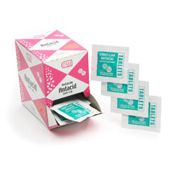 Certified Safety Mfg.'s Certi-Lak TABLETS - 2/pkg. - 1000 pkgs. - 2000 Tablets - Dispenser Box - Certi-Lak TABLETS - Calcium Carbonate 420mg. in Glycine base