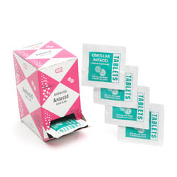Certified Safety Mfg.'s Certi-Lak TABLETS - 2/pkg. - 1000 pkgs. - 2000 Tablets - Dispenser Box - Certi-Lak TABLETS - Calcium Carbonate 420mg. in Glycine base